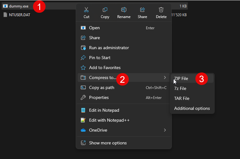 echo . > dummy.exe